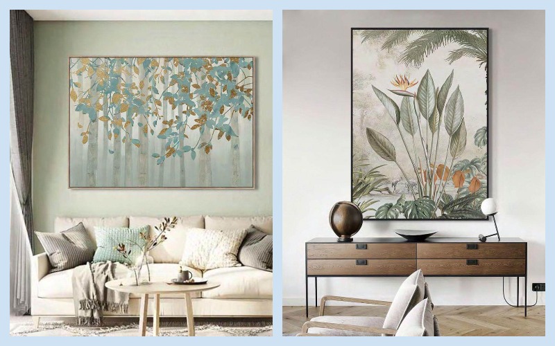 Дополнительно раскрыть тему весны в интерьере можно с помощью эффектной большой картины. Если обои менять не хочется, а привычный вид обстановки уже порядком надоел, украсьте стену полотном с изображением нежных цветов или пышной зелени и растительности. По крайней мере, за ними можно не ухаживать и их не нужно поливать.