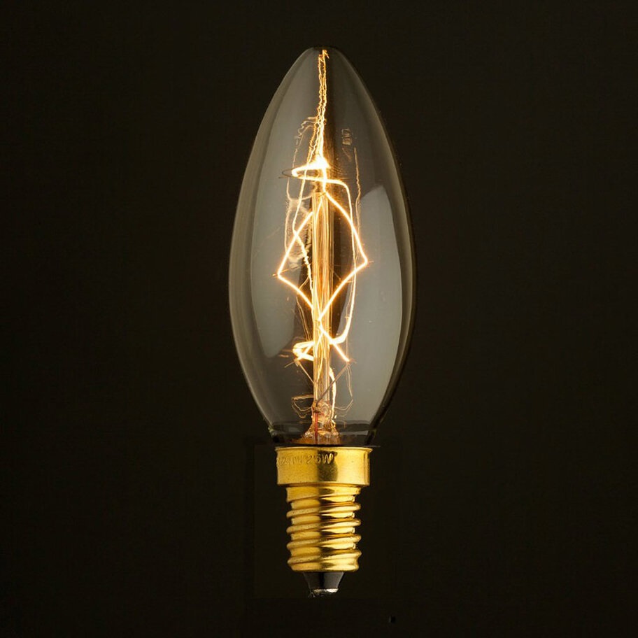 Лампа накаливания .в форме свечи с цоколем E14 и размерами 100 мм по высоте и диаметром в 35 мм обладает мощностью в 40 W, благодаря чему она может осветить 2 кв. м. Изделие рассчитано на использование в сети с переменным напряжением в 220-240В.