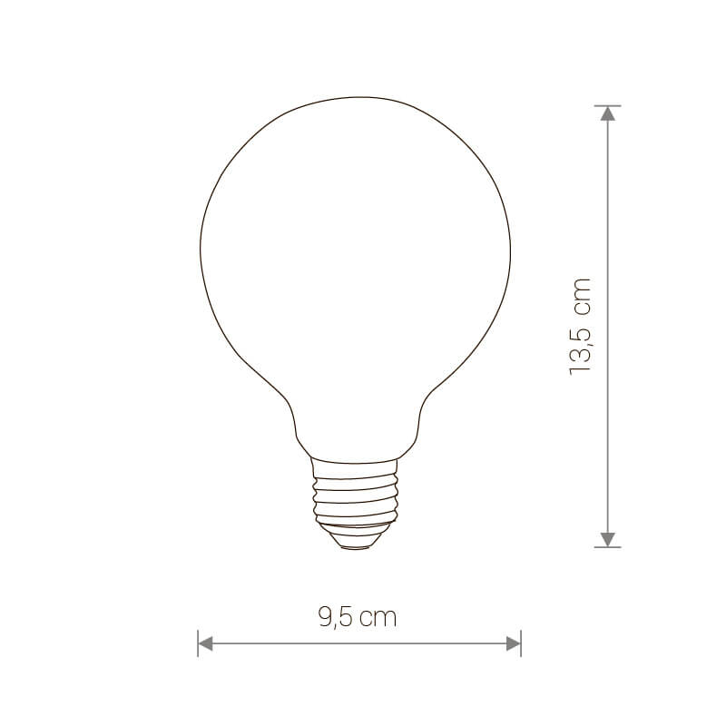 Светодиодная лампочка .в форме шара с цоколем E27 и размерами 135 мм по высоте и диаметром в 95 мм обладает мощностью в 8 W, благодаря чему она может осветить 2.7 кв. м. Цветовая температура – 3000 К, т.е. теплый свет, создающий атмосферу уюта. Изделие рассчитано на использование в сети с переменным напряжением в 220-240В.