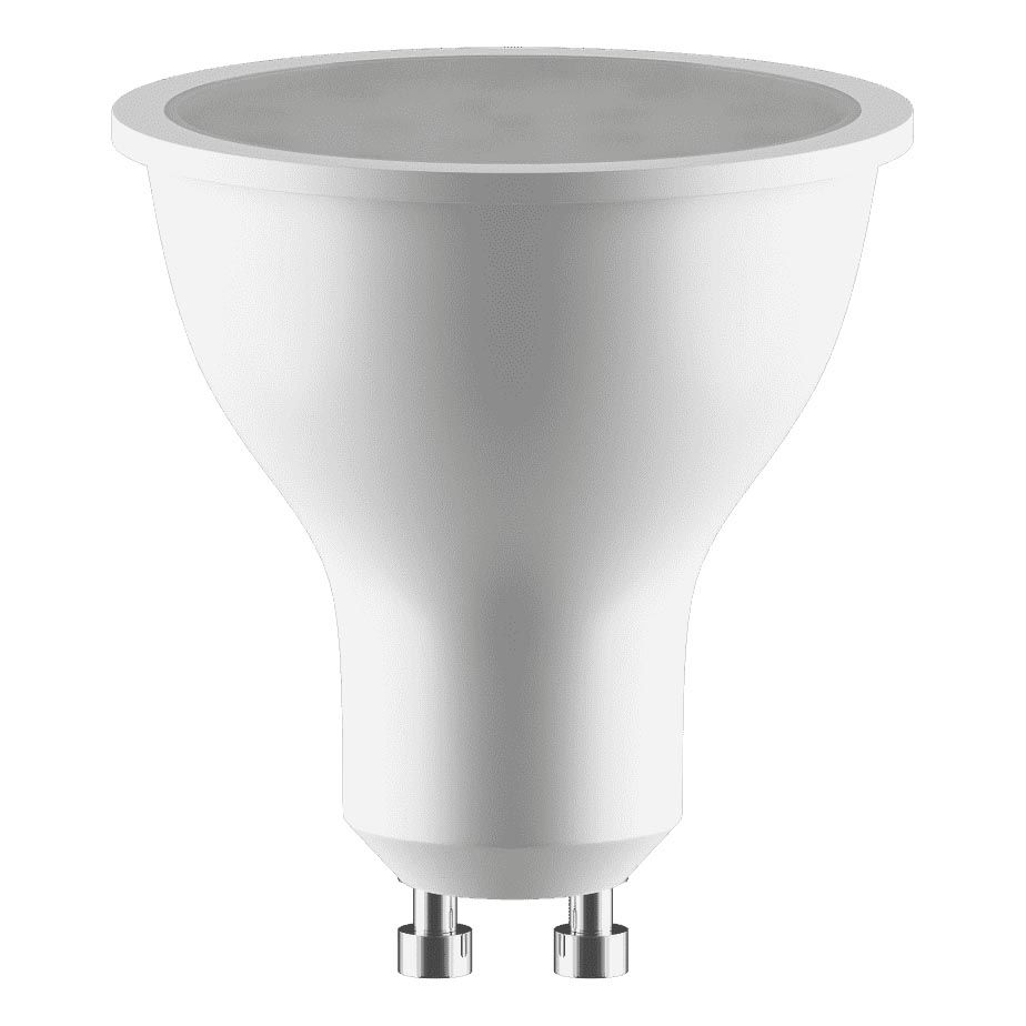 Светодиодная лампочка .в форме полусферы с цоколем GU10 и размерами 52 мм по высоте и диаметром в 50 мм обладает мощностью в 7 W, благодаря чему она может осветить 2.3 кв. м. Цветовая температура – 4100 К, т.е. белый свет, подходящий для рабочего настроя (не рекомендуется для детской комнаты). Изделие рассчитано на использование в сети с переменным напряжением в 220-240В.