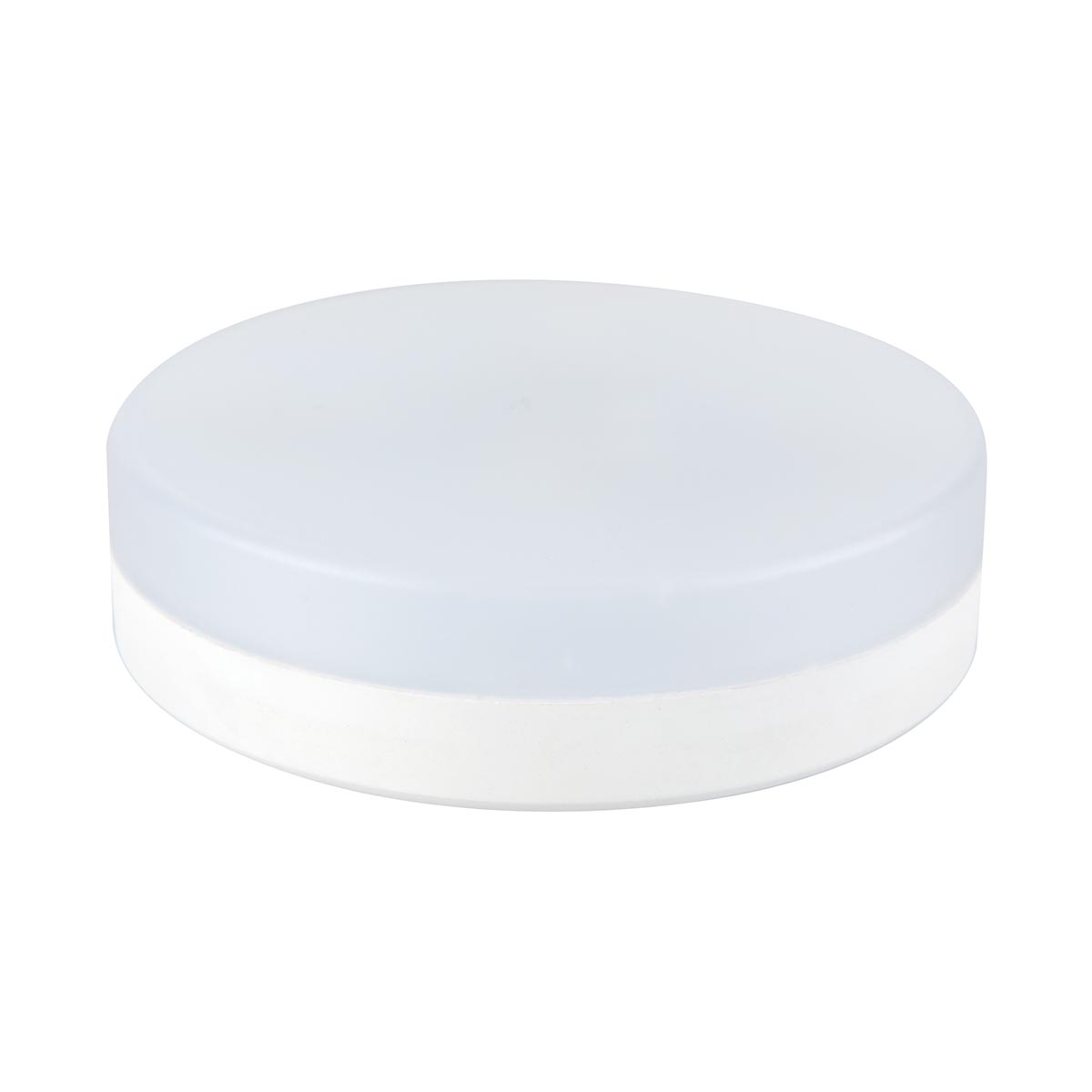 Светодиодная лампочка .в форме таблетки с цоколем GX53 и размерами 26 мм по высоте и диаметром в 75 мм обладает мощностью в 6 W, благодаря чему она может осветить 2 кв. м. Цветовая температура – 3300 К, т.е. белый свет, подходящий для рабочего настроя (не рекомендуется для детской комнаты). Изделие рассчитано на использование в сети с переменным напряжением в 220-240В.
