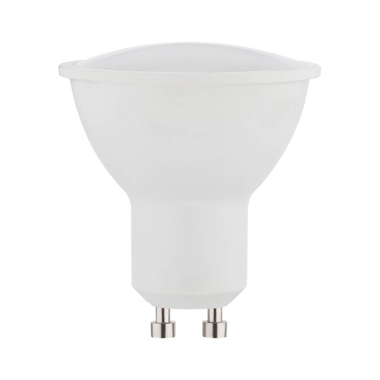 Светодиодная лампочка .в форме полусферы с цоколем GU10 и размерами 54 мм по высоте и диаметром в 53 мм обладает мощностью в 5 W, благодаря чему она может осветить 1.7 кв. м. Цветовая температура – 2700 К, т.е. теплый свет, создающий атмосферу уюта. Изделие рассчитано на использование в сети с переменным напряжением в 240В.