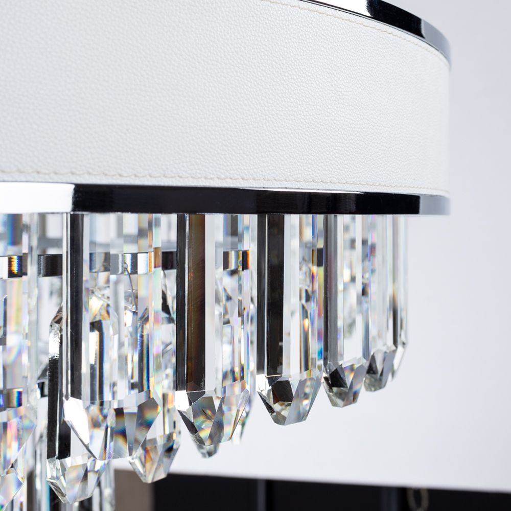 Стильная модель A1002LM-8CC от итальянской компании Arte Lamp относится к коллекции Diadem и отлично подойдет для установки на потолок в гостиной, оформленной в стиле модерн. Подвесная люстра Arte Lamp Diadem A1002LM-8CC с цилиндрическими плафонами осветит помещение площадью 22 кв. м. Производитель Arte Lamp рекомендует использовать для устройства лампы накаливания с цоколем E14 и мощностью 60 W. Прибор произведен с использованием материалов: хрусталь, металл и кожа и может использоваться для натяжного потолка. Основным цветом товара является белый и серебристо-стальной. Подвесная люстра A1002LM-8CC продается по цене 42990 руб. Торопитесь сделать заказ в интернет-магазине ВамСвет.