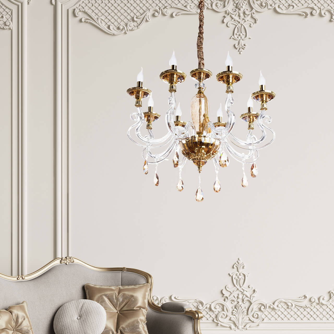 Прекрасная модель 5125/07 LM-8 от итальянской компании Divinare относится к коллекции Simona Amber и отлично подойдет для установки на потолок в гостиной, оформленной в стиле неоклассики. Подвесная люстра Divinare Simona 5125/07 LM-8 без плафонов осветит помещение площадью 18 кв. м. Производитель Divinare рекомендует использовать для устройства лампы накаливания с цоколем E14 и мощностью 40 W. Прибор произведен с использованием материалов: стекло и металл и может использоваться для натяжного потолка. Основным цветом товара является коричневый. Торопитесь сделать заказ в интернет-магазине ВамСвет.