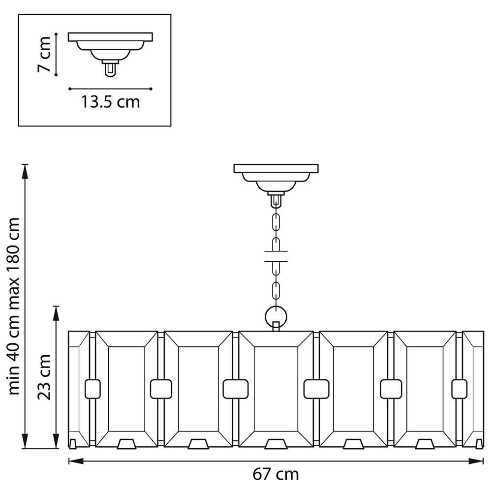 - Технические характеристикиОсновныеРазмерыВысота, мм230Диаметр, мм670Высота встраиваемой части, мм70Диаметр врезного отверстия, мм135Длина подвеса, мм1400Вес, кг11.1ЛампыТип цоколяПосмотреть другие товары