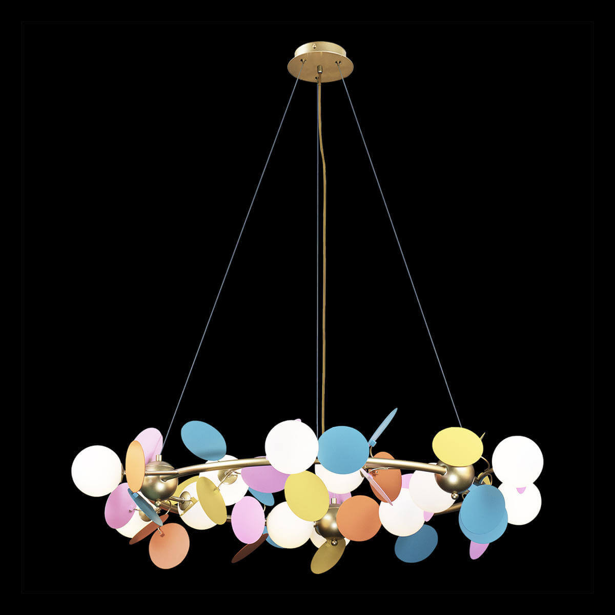 данной категорииКоличество плафонов12РазмерыВысота, мм220Диаметр, мм1050Высота встраиваемой части, мм25Диаметр врезного отверстия, мм150Длина подвеса, мм1200Вес, кг8Цвет и материалВиды материаловПосмотреть другие товары