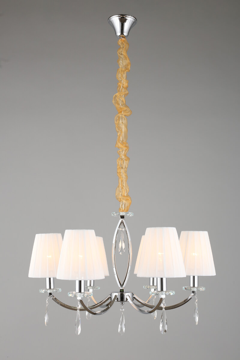 Роскошная модель OML-57703-06 от китайской компании Omnilux относится к коллекции Breguzzo и отлично подойдет для установки на потолок в гостиной, оформленной в классическом стиле. Подвесная люстра Omnilux Breguzzo OML-57703-06 с плафонами-конусами осветит помещение площадью 13 кв. м. Производитель Omnilux рекомендует использовать для устройства лампы накаливания с цоколем E14 и мощностью 40 W. Прибор произведен с использованием материалов: текстиль, металл и ткань и может использоваться для натяжного потолка. Основным цветом товара является белый и серебристо-стальной. Подвесная люстра OML-57703-06 продается по цене 15660 руб. Торопитесь сделать заказ в интернет-магазине ВамСвет.