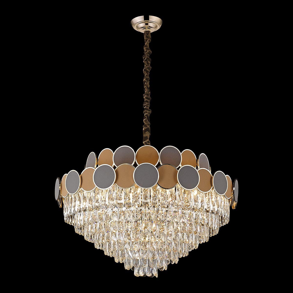данной категорииМатериал арматурыМеталлМатериал плафоновКожаНаправление плафоновВнизВид рассеивателяХрустальФорма рассеивателяПосмотреть другие товары