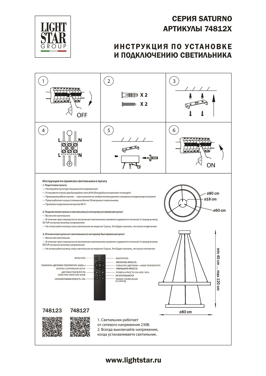 светодиодных лампПодходит для низких потолковНетПульт ДУДаНаличие диммераДаТип подвесаТросТип управленияпульт ДУ + диммерЦвет свеченияОт теплого до холодногоСрок службы20000 часовГарантия производителя12 месяцевГарантия магазина12 месяцевРазделКаталог