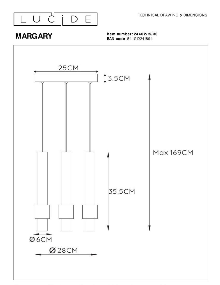 Подвесная светодиодная люстра Lucide Margary 24402/15/30