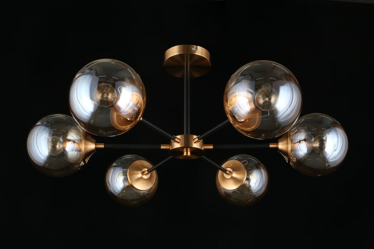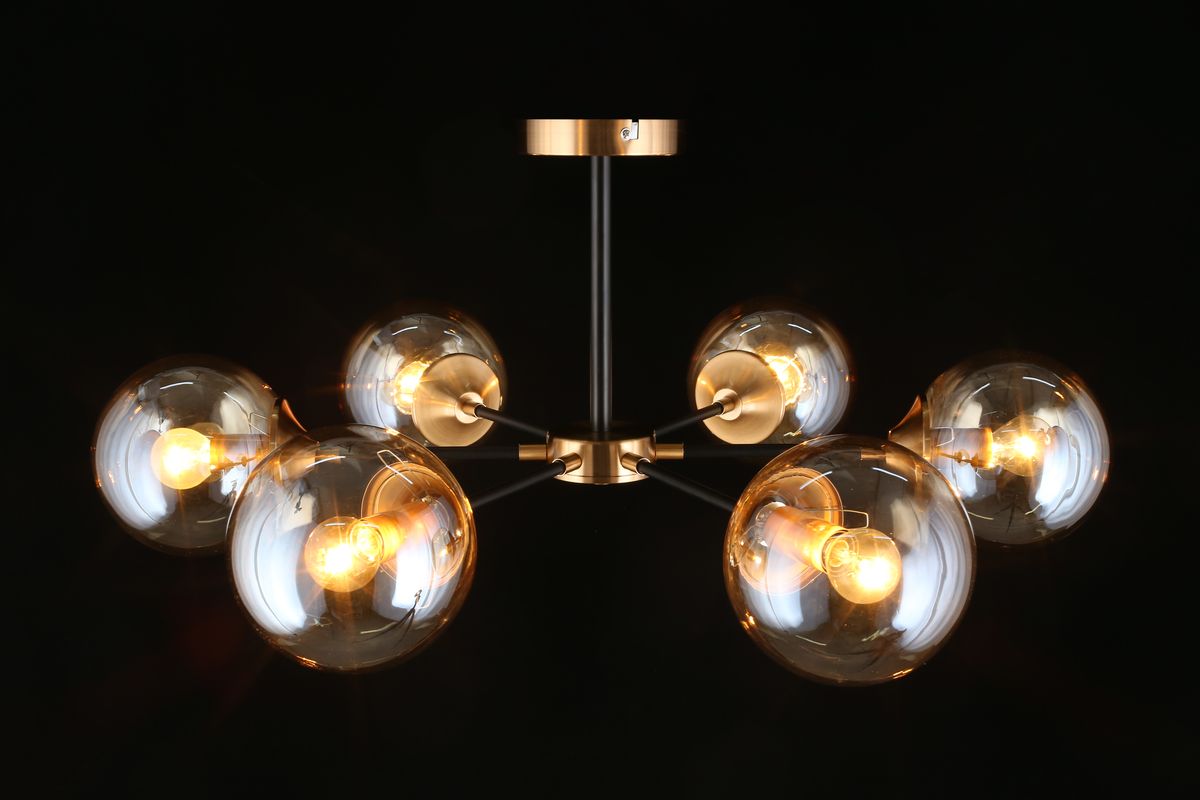Неповторимая модель APL.909.07.06 от польской компании Aployt относится к коллекции Beta и отлично подойдет для установки на низкий потолок спальни, оформленной в современном стиле. Потолочная люстра Aployt Beta APL.909.07.06 с плафонами в виде шаров осветит помещение площадью 16 кв. м. Производитель Aployt рекомендует использовать для устройства лампы накаливания с цоколем E14 и мощностью 40 W. Прибор произведен с использованием материалов: стекло и металл и может использоваться для натяжного потолка. Основным цветом товара является янтарный и черный. Потолочная люстра APL.909.07.06 продается по цене 11620 руб. Торопитесь сделать заказ в интернет-магазине ВамСвет.