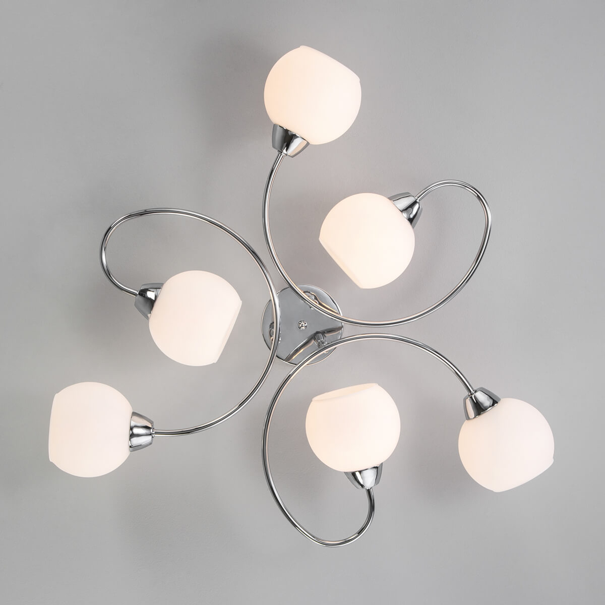 Замечательная модель 30136/6 хром от российской компании Eurosvet относится к коллекции Tulia и отлично подойдет для установки на низкий потолок спальни, оформленной в стиле модерн. Потолочная люстра Eurosvet Tulia 30136/6 хром с плафонами в виде шаров осветит помещение площадью 13 кв. м. Производитель Eurosvet рекомендует использовать для устройства лампы накаливания с цоколем E27 и мощностью 40 W. Прибор произведен с использованием материалов: стекло и металл и может использоваться для натяжного потолка. Основным цветом товара является белый и серебристо-стальной. Потолочная люстра 30136/6 хром продается по цене 12100 руб. Торопитесь сделать заказ в интернет-магазине ВамСвет.