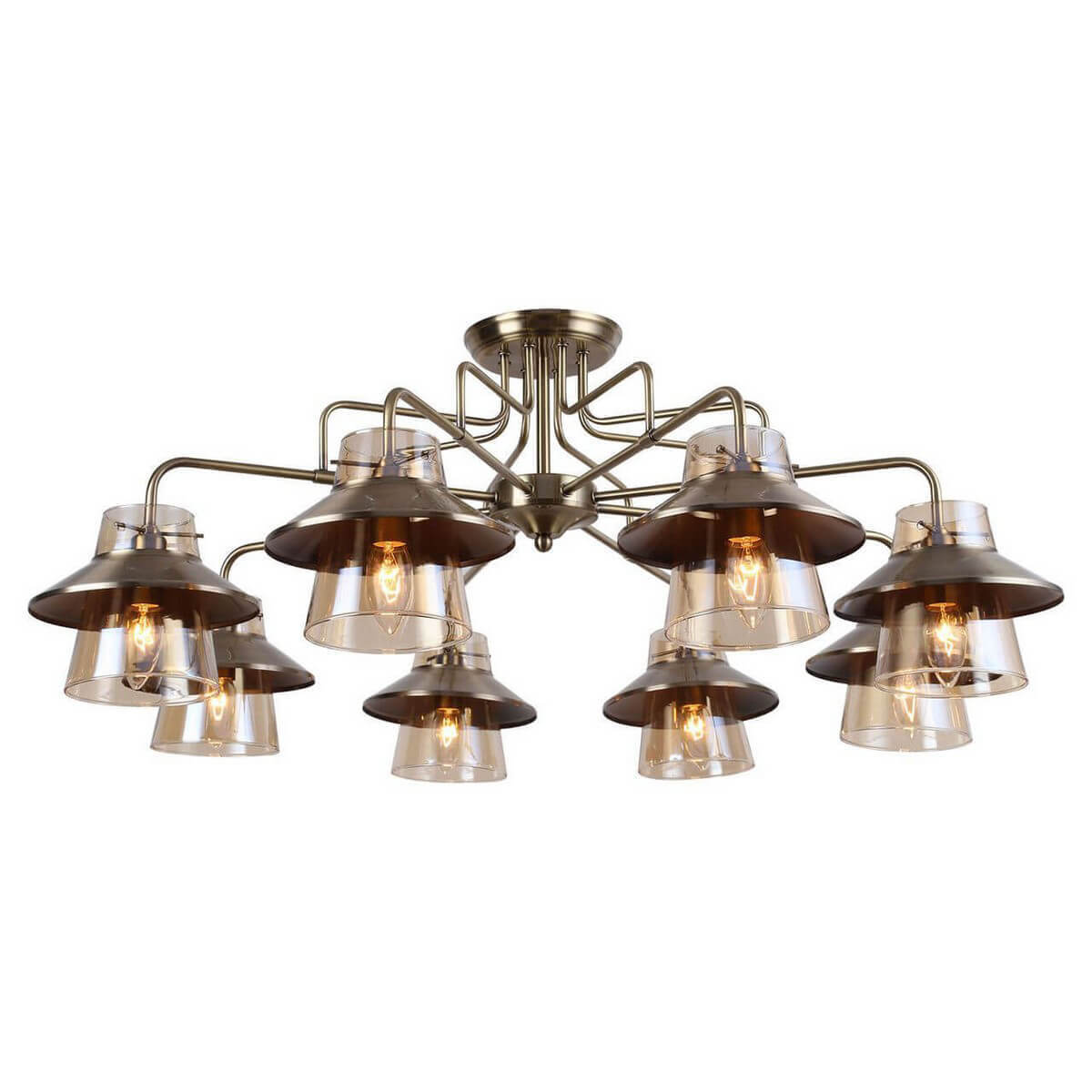 Утонченная модель GRLSP-8079 от итальянской компании Lussole относится к коллекции Cochise и отлично подойдет для установки на потолок в гостиной, оформленной в стиле флористика. Потолочная люстра Lussole Lgo Cochise GRLSP-8079 с плафонами-конусами осветит помещение площадью 24 кв. м. Производитель Lussole рекомендует использовать для устройства светодиодные лампы с цоколем E14 и мощностью 6 W. Прибор произведен с использованием материалов: стекло и металл и может использоваться для натяжного потолка. В комплект поставки входят также лампы. Основным цветом товара является янтарный и бронзовый. Потолочная люстра Lgo GRLSP-8079 продается по цене 21469 руб. Торопитесь сделать заказ в интернет-магазине ВамСвет.