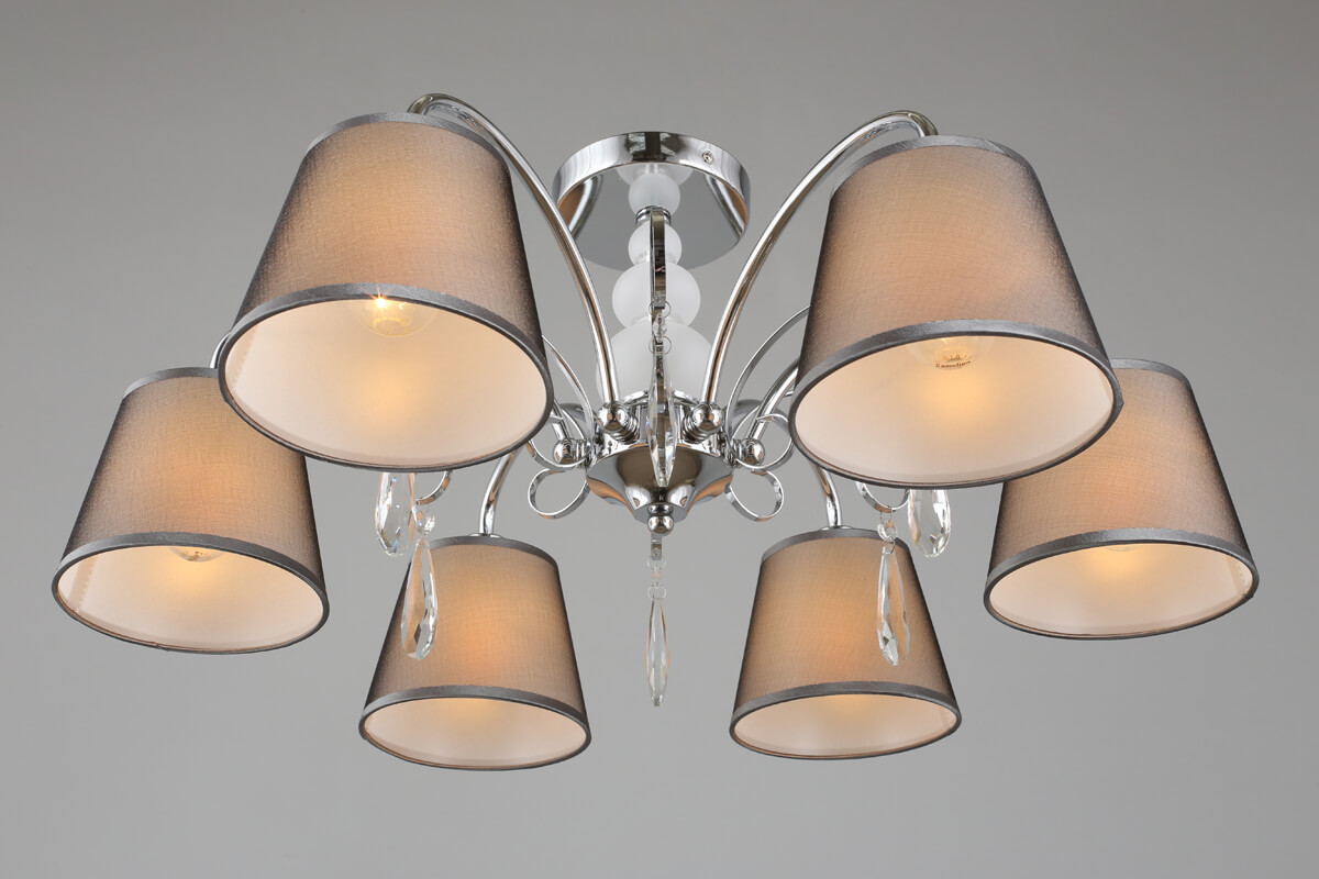 Уникальная модель OML-66707-06 от китайской компании Omnilux относится к коллекции Recco и отлично подойдет для установки на низкий потолок спальни, оформленной в стиле модерн. Потолочная люстра Omnilux Recco OML-66707-06 с плафонами-конусами осветит помещение площадью 13 кв. м. Производитель Omnilux рекомендует использовать для устройства лампы накаливания с цоколем E14 и мощностью 40 W. Прибор произведен с использованием материалов: текстиль, металл и ткань и может использоваться для натяжного потолка. Основным цветом товара является серый и серебристо-стальной. Потолочная люстра OML-66707-06 продается по цене 10940 руб. Торопитесь сделать заказ в интернет-магазине ВамСвет.