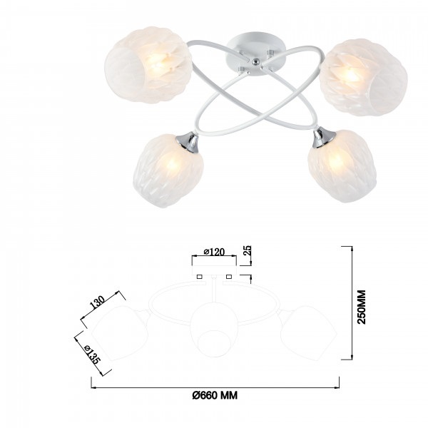 Выдающаяся модель 3136-304 от итальянской компании Rivoli относится к коллекции Hettie и отлично подойдет для установки на потолок в гостиной, оформленной в стиле модерн. Потолочная люстра Rivoli Hettie 3136-304 Б0055381 с плафонами в виде бокалов осветит помещение площадью 12 кв. м. Производитель Rivoli рекомендует использовать для устройства светодиодные лампы с цоколем E27 и мощностью 60 W. Прибор произведен с использованием материалов: металл и стекло и может использоваться для натяжного потолка. Основным цветом товара является белый. Потолочная люстра 3136-304 Б0055381 продается по цене 5687 руб. Торопитесь сделать заказ в интернет-магазине ВамСвет.