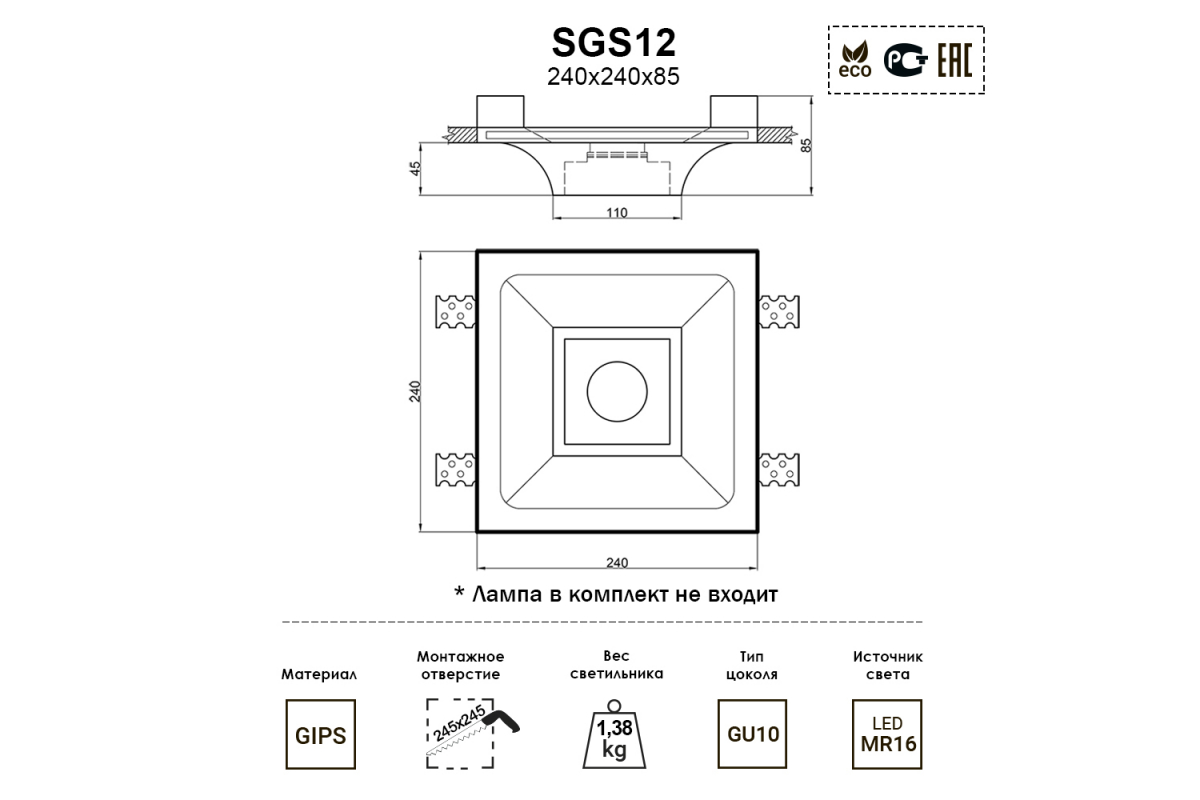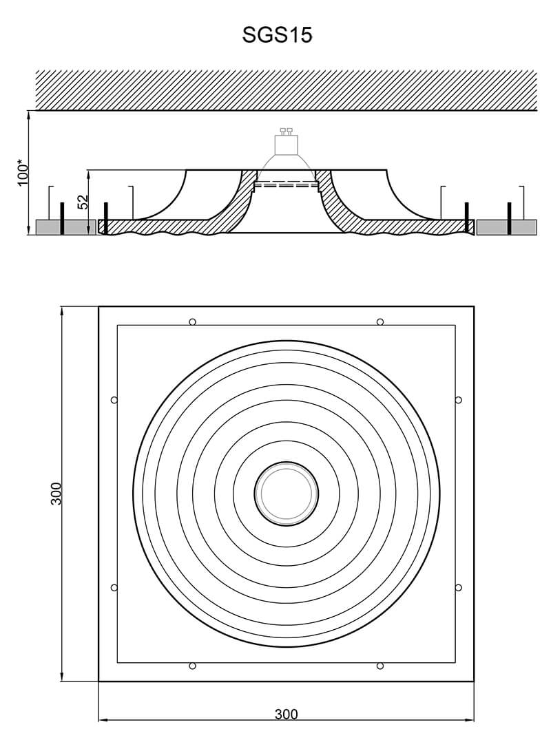 данной категорииОсобенностьМожно окрашивать в любой цветРазмерыШирина, мм300Высота, мм52Длина, мм300Вес, кг2.3ЛампыТип цоколяПосмотреть другие товары