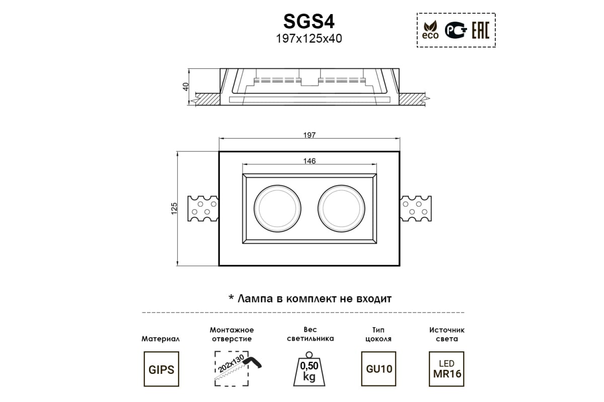 данной категорииОсобенностьМожно окрашивать в любой цветРазмерыШирина, мм125Высота, мм40Длина, мм197Вес, кг0.8ЛампыТип цоколяПосмотреть другие товары