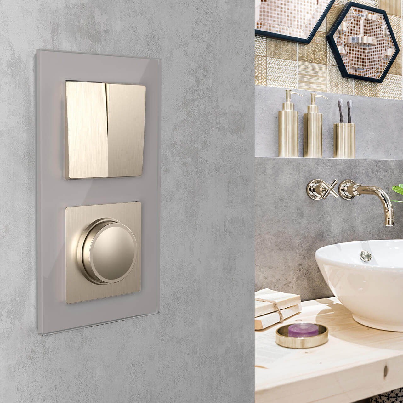 Выключатель двухклавишный проходной Werkel шампань рифленый W1122010 4690389160240